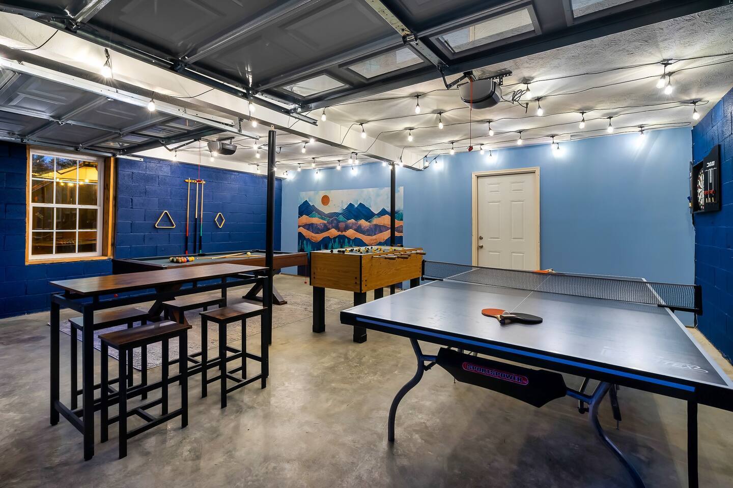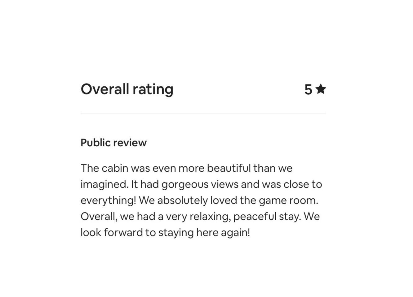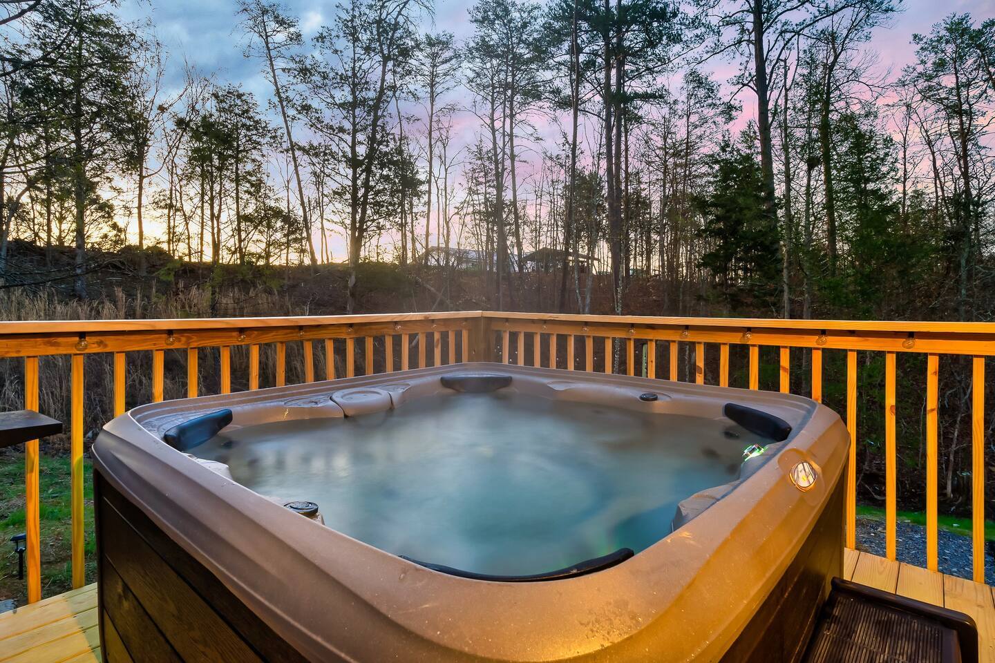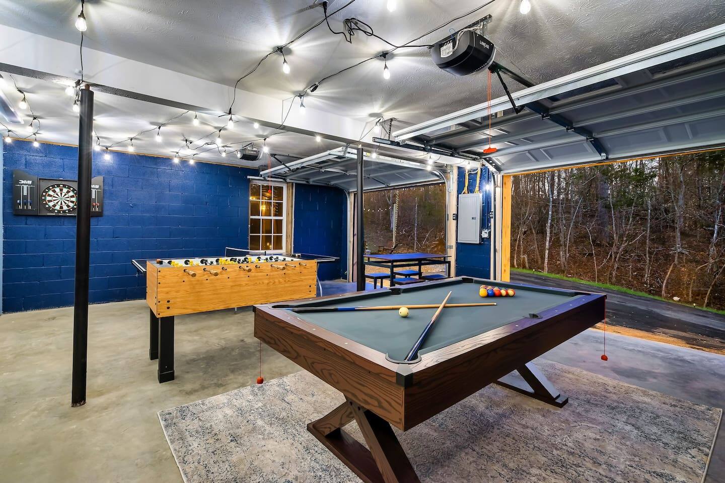 ✦ Modern Mountain Retreat | Hot Tub, Game Room, Firepit + More!! ✦ Close enough to everything, but just far enough away to relax!! Welcome to your perfect Smoky Mountain escape—just a short drive to top attractions like Dollywood(25min), The Island(15min), and the Smoky Mountain National Park(30min). This stylish, two-bedroom cabin offers everything from an epic game room, to a private hot tub with outdoor lighting. Whether you're relaxing around string wrapped trees or enjoying a cozy night by the fire, this home is designed for both fun and comfort. ★ HIGHLIGHTS ★ • 🛁 Private 7-person hot tub + propane grill & picnic table • 🎮 Game room with pool, ping pong, foosball, darts & more • 🔥 Firepit with 6 wooden chairs for s’mores & stargazing • ✨ Beautiful lights wrap deck and nearby trees • ☕ Coffee bar with Keurig + K-cups, fresh beans/grounds, creamers • 🛏️ King, Queen & Sleeper Sofa • 📺 Roku Smart TVs in every room • 🧼 Complimentary bath amenities, paper goods, spices, propane & more • 🏞️ Close to top Smoky Mountain attractions •🧹 Clean & Cozy • 🅿️ Parking for 3 vehicles ★ BEDROOMS & BATHROOMS ★ Master Suite • King bed with cotton sheets & plush duvet • Closet with 2 luggage racks, fan, and hangers • Roku TV + USB & HDMI access Guest Bedroom • Queen bed, full-length mirror, dresser • Roku TV + USB & HDMI access Additional Sleeping Spaces • Sleeper sofa with stored linens under L shaped couch Bathrooms (2 Full) • Stocked with shampoo, conditioner, body wash, lotion, soap • Extra large towels also provided for hot tub ★ LIVING SPACES ★ Living Room • Open-concept layout • Sleeper sofa w/ built-in storage • 65" Smart TV, cozy atmosphere • Electric Fireplace • Arcade(15,000 games) • Board Games Kitchen • Fully stocked: cookware, dishes, BBQ tools, full spice rack • Coffee bar: Keurig pods & fresh ground/bean options Game Room (Garage Entry) • Pool table, ping pong, foosball, darts • High-top table for relaxing between rounds ★ OUTDOOR SPACES ★ Front Porch • Peaceful seating area with two wooden swings below deck (Note: 250 lb weight limit – mind your head!) Back Deck • 7-person hot tub • Gas grill (propane provided) • Picnic table & string lights Firepit Area • Down stone steps • Surrounded by string lighting & 6 wooden chairs ★ HOUSE RULES ★ • No pets, parties, or smoking indoors • Quiet hours: 10 PM – 8 AM • No unregistered or third-party guests • Primary guest must be 25+, sign rental agreement, provide ID • $300 refundable deposit (via credit card hold) • No ice or firewood provided at property(guests will need to purchase) • No glitter, hair dye, or glass in/around hot tub • Smoking violations = $725+ remediation fee ★ NEARBY ATTRACTIONS ★ • WonderWorks – 3.3 mi • WaHoo Ziplines – 3 mi • Tanger Outlets – 3.6 mi • The Island – 7 mi • Dollywood – 11 mi • Anakeesta – 15 mi • Smoky Mountain National Park – 19 mi • Ripley's Aquarium – 15 mi • Ober Mountain – 16 mi • Rocky Top Mountain Coaster – 9 mi • Rafting in the Smokies – 16 mi Parking: Long private drive with space for 3 vehicles. Note: Stairs are required to access the home and lower-level rooms.