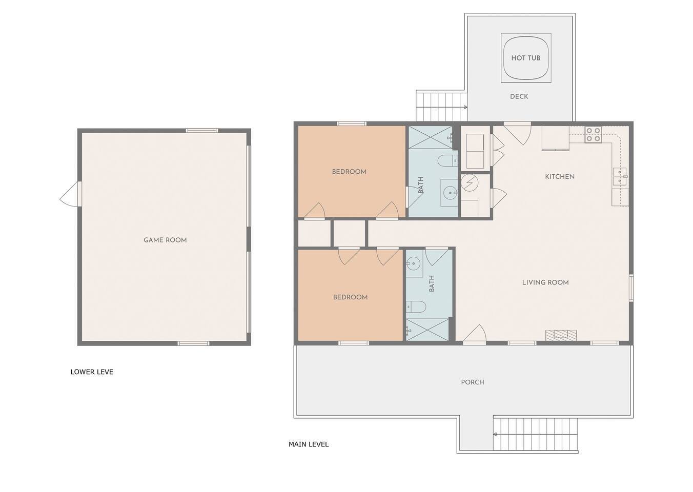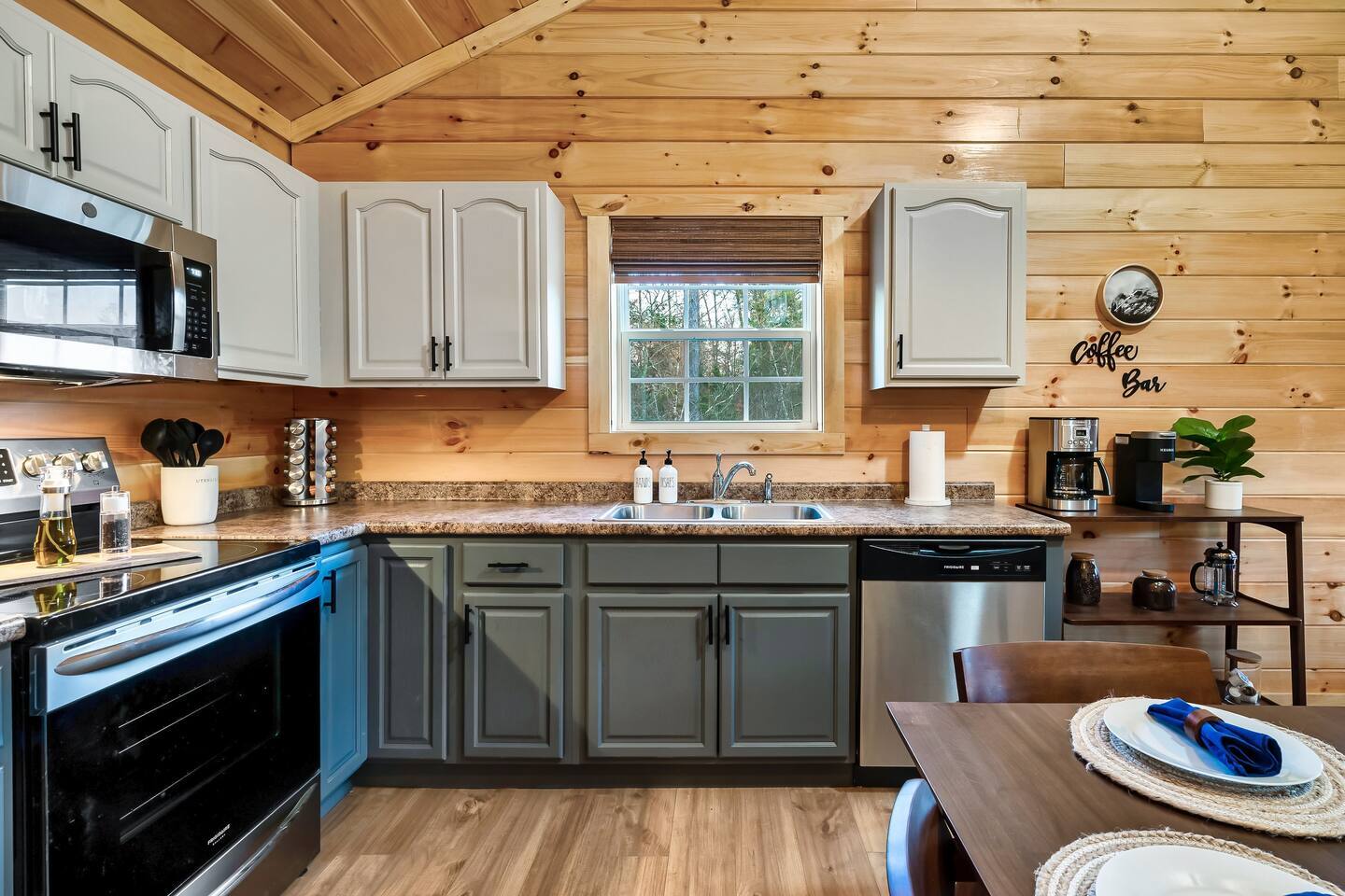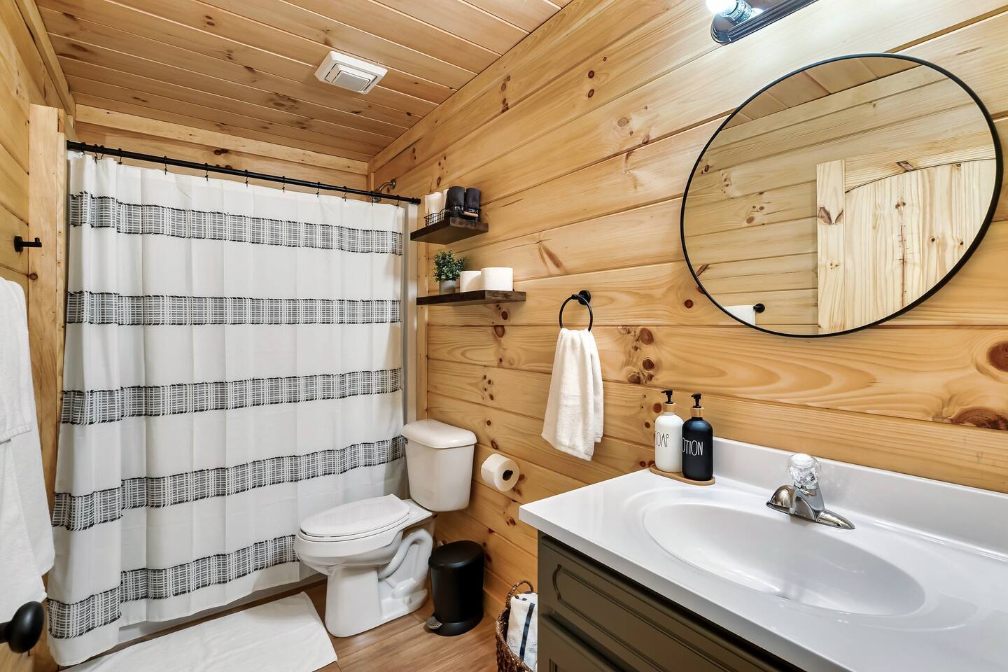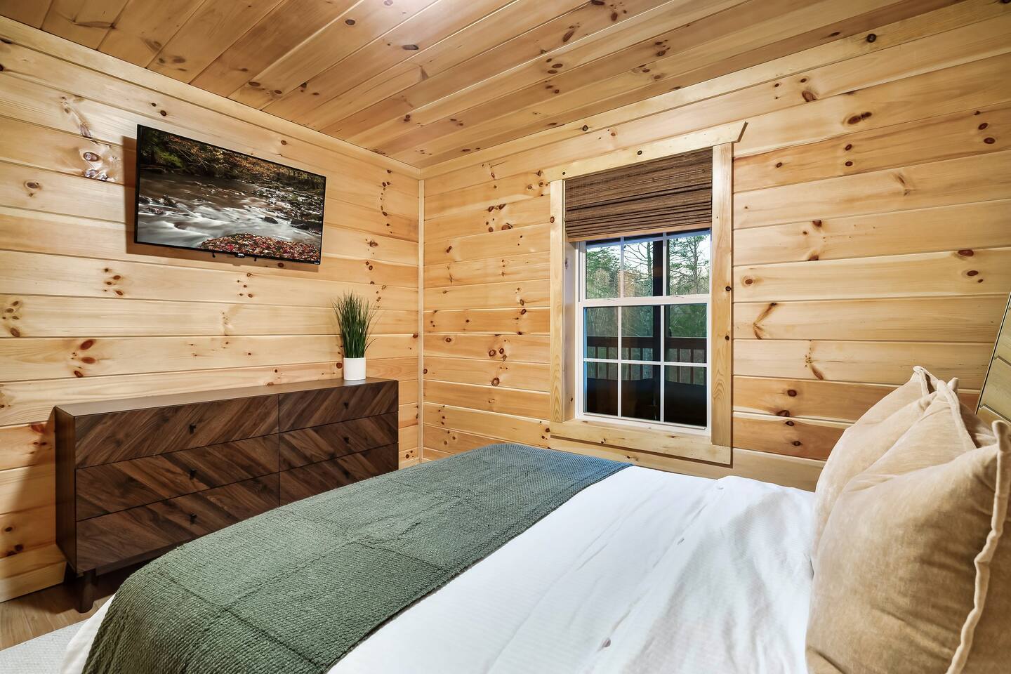 ✦ Modern Mountain Retreat | Hot Tub, Game Room, Firepit + More!! ✦ Close enough to everything, but just far enough away to relax!! Welcome to your perfect Smoky Mountain escape—just a short drive to top attractions like Dollywood(25min), The Island(15min), and the Smoky Mountain National Park(30min). This stylish, two-bedroom cabin offers everything from an epic game room, to a private hot tub with outdoor lighting. Whether you're relaxing around string wrapped trees or enjoying a cozy night by the fire, this home is designed for both fun and comfort. ★ HIGHLIGHTS ★ • 🛁 Private 7-person hot tub + propane grill & picnic table • 🎮 Game room with pool, ping pong, foosball, darts & more • 🔥 Firepit with 6 wooden chairs for s’mores & stargazing • ✨ Beautiful lights wrap deck and nearby trees • ☕ Coffee bar with Keurig + K-cups, fresh beans/grounds, creamers • 🛏️ King, Queen & Sleeper Sofa • 📺 Roku Smart TVs in every room • 🧼 Complimentary bath amenities, paper goods, spices, propane & more • 🏞️ Close to top Smoky Mountain attractions •🧹 Clean & Cozy • 🅿️ Parking for 3 vehicles ★ BEDROOMS & BATHROOMS ★ Master Suite • King bed with cotton sheets & plush duvet • Closet with 2 luggage racks, fan, and hangers • Roku TV + USB & HDMI access Guest Bedroom • Queen bed, full-length mirror, dresser • Roku TV + USB & HDMI access Additional Sleeping Spaces • Sleeper sofa with stored linens under L shaped couch Bathrooms (2 Full) • Stocked with shampoo, conditioner, body wash, lotion, soap • Extra large towels also provided for hot tub ★ LIVING SPACES ★ Living Room • Open-concept layout • Sleeper sofa w/ built-in storage • 65" Smart TV, cozy atmosphere • Electric Fireplace • Arcade(15,000 games) • Board Games Kitchen • Fully stocked: cookware, dishes, BBQ tools, full spice rack • Coffee bar: Keurig pods & fresh ground/bean options Game Room (Garage Entry) • Pool table, ping pong, foosball, darts • High-top table for relaxing between rounds ★ OUTDOOR SPACES ★ Front Porch • Peaceful seating area with two wooden swings below deck (Note: 250 lb weight limit – mind your head!) Back Deck • 7-person hot tub • Gas grill (propane provided) • Picnic table & string lights Firepit Area • Down stone steps • Surrounded by string lighting & 6 wooden chairs ★ HOUSE RULES ★ • No pets, parties, or smoking indoors • Quiet hours: 10 PM – 8 AM • No unregistered or third-party guests • Primary guest must be 25+, sign rental agreement, provide ID • $300 refundable deposit (via credit card hold) • No ice or firewood provided at property(guests will need to purchase) • No glitter, hair dye, or glass in/around hot tub • Smoking violations = $725+ remediation fee ★ NEARBY ATTRACTIONS ★ • WonderWorks – 3.3 mi • WaHoo Ziplines – 3 mi • Tanger Outlets – 3.6 mi • The Island – 7 mi • Dollywood – 11 mi • Anakeesta – 15 mi • Smoky Mountain National Park – 19 mi • Ripley's Aquarium – 15 mi • Ober Mountain – 16 mi • Rocky Top Mountain Coaster – 9 mi • Rafting in the Smokies – 16 mi Parking: Long private drive with space for 3 vehicles. Note: Stairs are required to access the home and lower-level rooms.