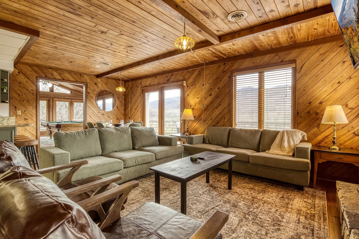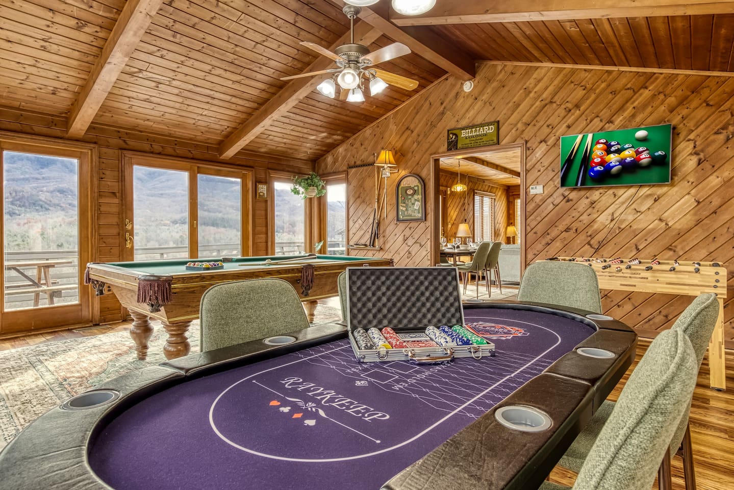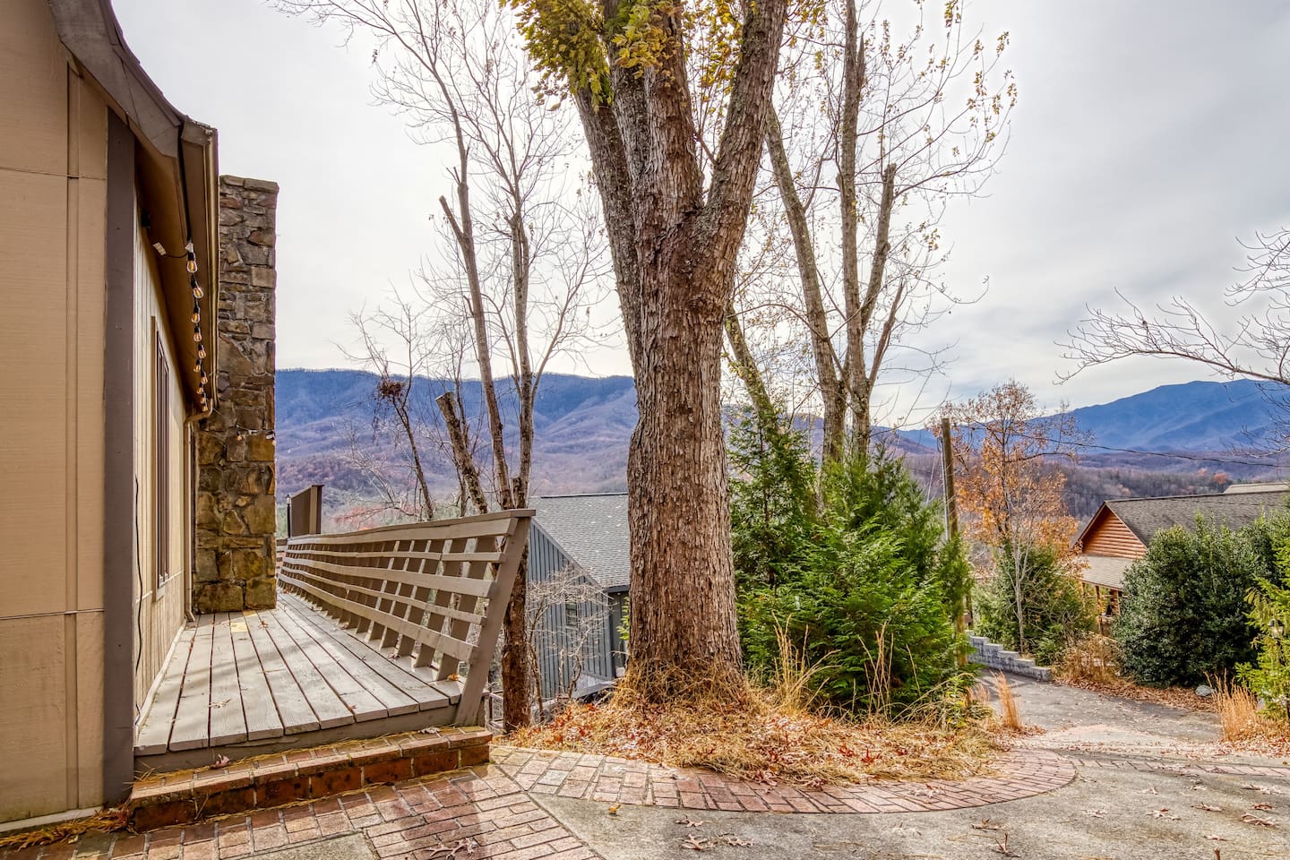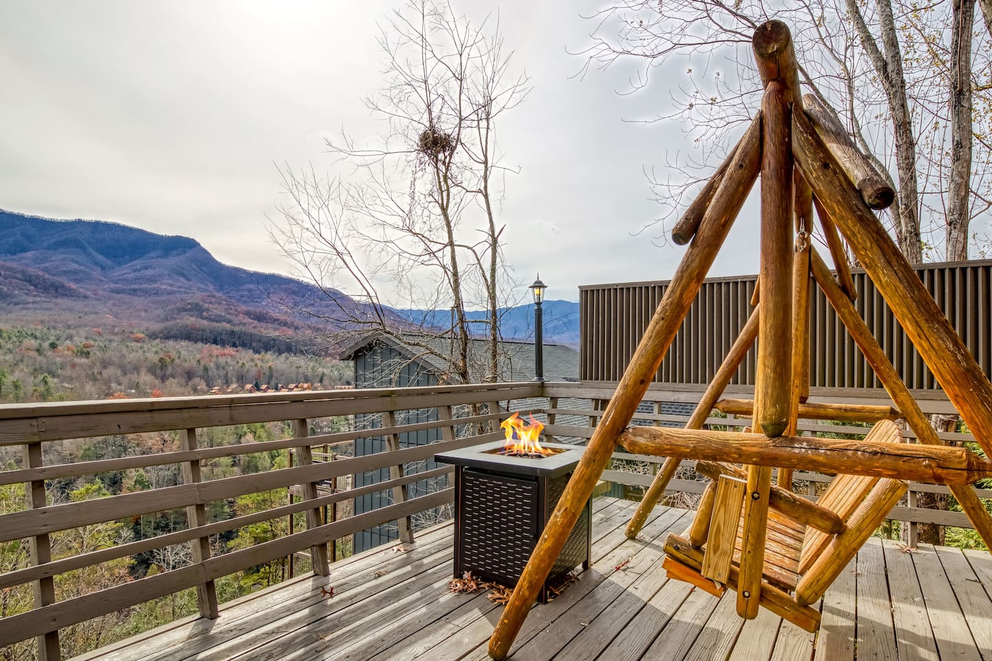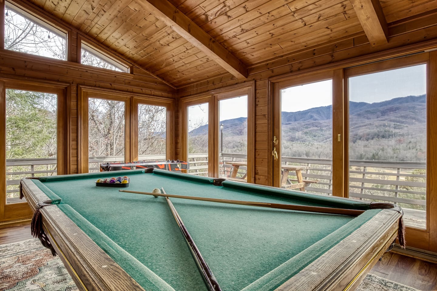⛰️ Cloud 9-Breathtaking Views •Theater •Games •Hot Tub •Resort Pools •Pet Friendly Welcome to Cloud9, a spacious, family-friendly luxury cabin perched high in the Smokies with true, unobstructed panoramic views. Designed for unforgettable family trips, group getaways, and relaxing mountain retreats, this home combines comfort, entertainment, and resort-style amenities all in one place. Whether you’re relaxing on the deck at sunrise, gathering around the fire pit, watching movies on the 120” theater screen, or splashing in the resort pools — this cabin delivers the full Smokies experience. ✨ What You’ll Love • ⛰️ Stunning unobstructed mountain views from multiple levels • 🎬 Private theater room w/ 120” screen & cozy reclining seating • 🎱 Game room with air hockey, pool table, and foosball • 🛁 Relaxing jetted hot tub overlooking the mountains • 🔥 Outdoor fire pit + porch swing + plenty of seating • 📶 High-speed 250 Mbps WiFi • 📺 4 Smart TVs with Sling, Netflix & HBO Max • 🏊 3 resort-style shared pools • 🏓 Nearby pickleball & basketball courts • 🍳 Fully stocked kitchen + charcoal grill •👫Perfect for families — huge bunk room, kids’ bunk space, and room to spread out 🏡 The Space: Main Level • Master bedroom with King bed & private ensuite bathroom • Open living room with mountain views & cozy seating • Fully equipped kitchen with everything needed to cook at home • Game room for hours of entertainment • Dedicated work desk for remote work or school Upper Level • Bedroom with King bed • Massive bunk room with four Queen bunk beds — ideal for families & groups • Full bathroom Lower Level • Kids’/teen bedroom with built-in bunk bed • Full bathroom • Private theater room with giant 120” screen, deep couches & cinematic lighting 🌲 Outdoor Living • Jetted hot tub with mountain views • Wood-burning fire pit surrounded by seating • Porch swing for morning coffee • Outdoor dining & lounging area • Charcoal grill • Peaceful tree-lined views from every angle 🛏️ Bedrooms & Bathrooms Bedrooms: 4 Beds: 8+ Bathrooms: 3 Sleeps: 16+ comfortably 🏊♂️ Resort Access Included: Guests have full access to all community amenities, including: • 3 resort-style outdoor pools • Nearby pickleball courts • Nearby basketball court • Walking areas, scenic overlooks & more 💼 Work-Friendly Features • 250 Mbps high-speed WiFi • Dedicated work desk • Strong cell service 🎉 Perfect For • Large families • Multi-family trips • Group retreats • Sports teams / tournaments • Smoky Mountain exploring • Movie & game-night lovers 📍 Nearby Attractions • 10 miles to Great Smoky Mountains National Park • 11 miles to Gatlinburg • 18 miles to Pigeon Forge • 19 miles to Dollywood 🏞️ Neighborhood Located in a peaceful mountain community just minutes from Gatlinburg and the Smoky Mountains, this cabin offers quiet seclusion with quick access to top attractions. The drive up the mountain is steep and winding in spots and may feel intimidating to some; the driveway is also steep. 2WD works in normal weather, but 4WD is strongly recommended in rain, ice, or snow. This area has routine bear visitors, so please keep a safe distance, lock your car doors, and never leave food in your vehicle. Standard Bear Advisory: • Never approach, feed, or attempt to interact with bears • Keep all food, trash, and scented items secured at all times • Do not leave food or coolers on decks or porches • Keep vehicles locked and free of food or wrappers • Maintain a minimum of 150 feet if you encounter a bear • Make noise and slowly back away — never run • Notify us immediately if a bear becomes persistent or aggressive ⚠️ BEFORE YOU BOOK — Things to Know Before You Book! • Mountain Roads: The drive in includes some steep, winding hills (all paved) — very typical for the Smokies and part of the mountain experience. It may feel a bit adventurous if you're not used to mountain driving. 4WD is required during inclement weather. • Steep Driveway: The driveway is also steep. 2WD is fine in normal weather, but 4WD is recommended during rain, ice, or snow. • Remote & Peaceful: The cabin is tucked away in a quiet, natural setting perfect for unplugging and relaxing. While it feels secluded, you’re still just 11 miles from downtown Gatlinburg and close to major attractions. • Bear Activity: This area experiences frequent bear activity, especially during warmer months. For your safety: • Never approach, feed, or attempt to interact with bears • Keep a minimum of 150 feet if you see one • Do not leave food, trash, coolers, or scented items outside • Lock all vehicle doors and remove ANY food or wrappers • Make noise and slowly back away if a bear comes near — never run • Use designated trash containers • Contact 24/7 Security if a bear becomes persistent or aggressive • Water Pressure (Shared Well): The cabin runs on a shared mountain well. Water pressure can be lower than average, especially if multiple showers or sinks are running. This is normal for higher-elevation cabins. 🔑 Guest Access Guests have the entire cabin to themselves plus full, unlimited access to all resort amenities. Self-check-in and keyless entry make arrival simple and private. ❤️ Why Guests Love Cloud9 This cabin offers the perfect balance of peaceful mountain seclusion, resort fun, luxury touches, and endless entertainment — all wrapped in sweeping Smoky Mountain views. You’ll feel like you’re on top of the world… because you are. Our prices include all fees. No hidden fees.