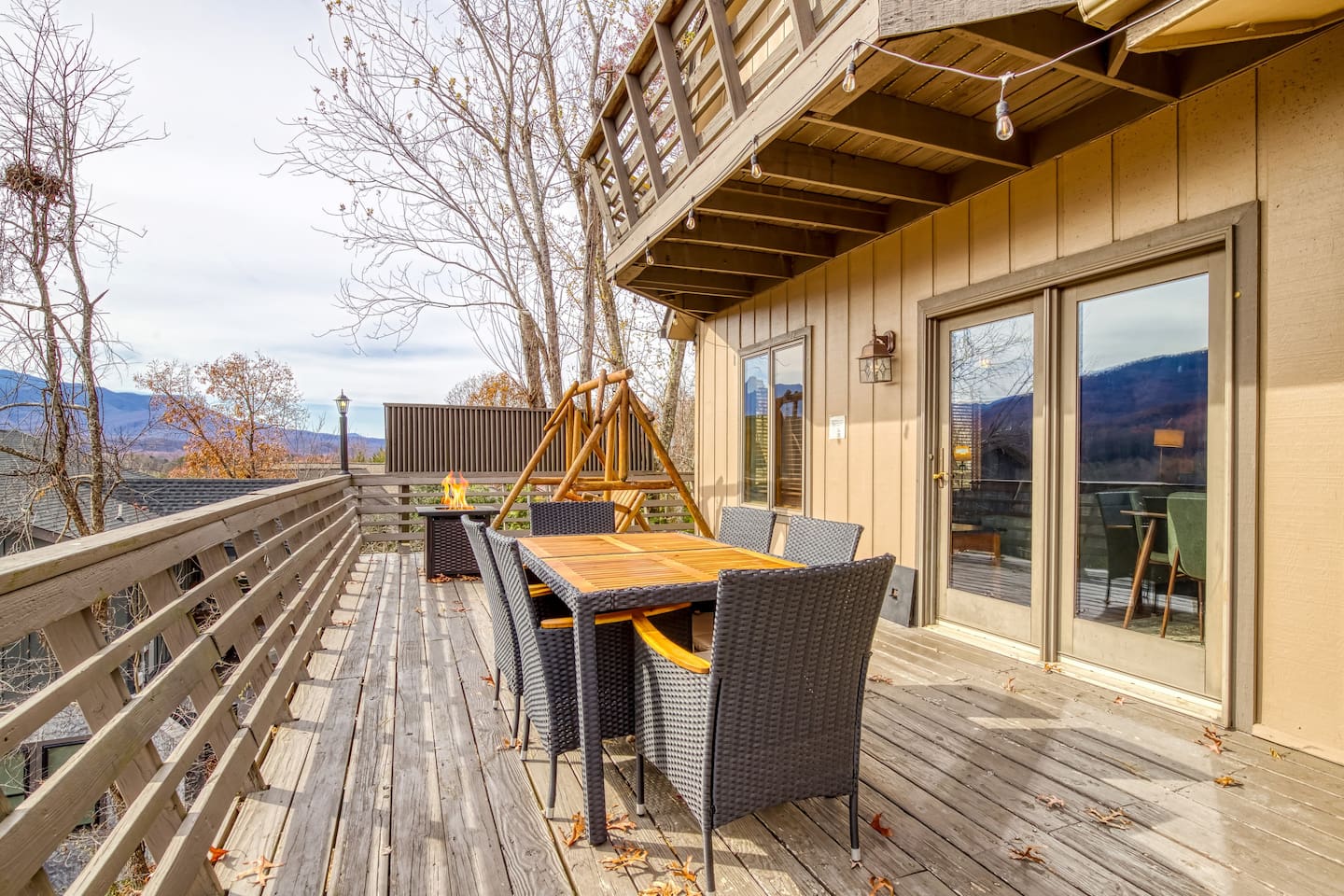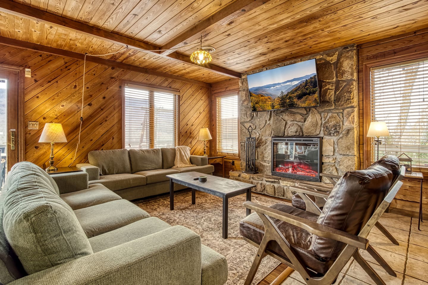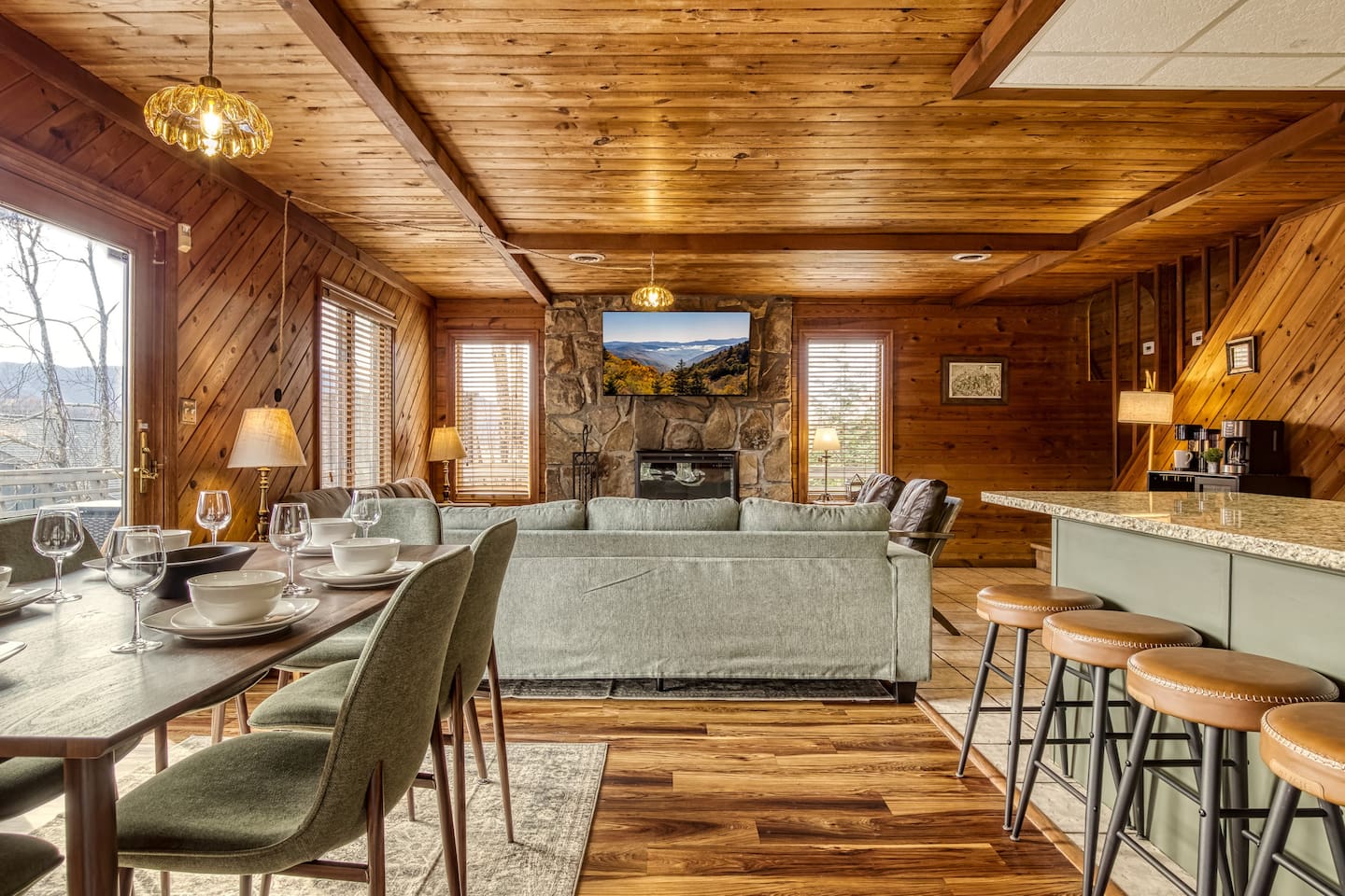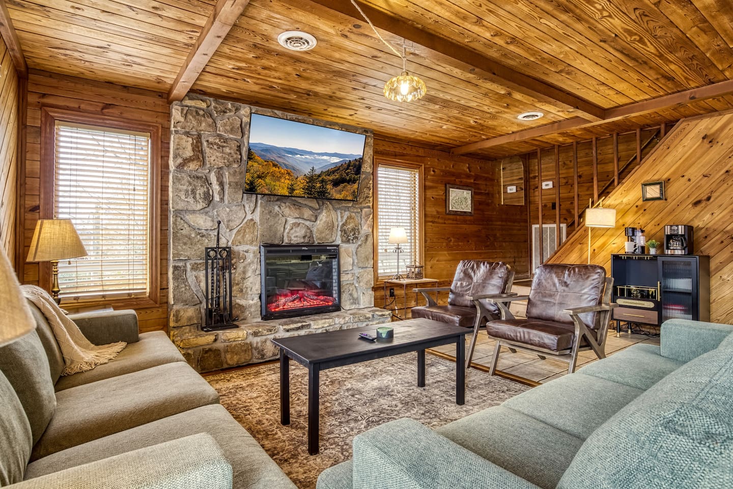 ⛰️ Cloud 9-Breathtaking Views •Theater •Games •Hot Tub •Resort Pools •Pet Friendly Welcome to Cloud9, a spacious, family-friendly luxury cabin perched high in the Smokies with true, unobstructed panoramic views. Designed for unforgettable family trips, group getaways, and relaxing mountain retreats, this home combines comfort, entertainment, and resort-style amenities all in one place. Whether you’re relaxing on the deck at sunrise, gathering around the fire pit, watching movies on the 120” theater screen, or splashing in the resort pools — this cabin delivers the full Smokies experience. ✨ What You’ll Love • ⛰️ Stunning unobstructed mountain views from multiple levels • 🎬 Private theater room w/ 120” screen & cozy reclining seating • 🎱 Game room with air hockey, pool table, and foosball • 🛁 Relaxing jetted hot tub overlooking the mountains • 🔥 Outdoor fire pit + porch swing + plenty of seating • 📶 High-speed 250 Mbps WiFi • 📺 4 Smart TVs with Sling, Netflix & HBO Max • 🏊 3 resort-style shared pools • 🏓 Nearby pickleball & basketball courts • 🍳 Fully stocked kitchen + charcoal grill •👫Perfect for families — huge bunk room, kids’ bunk space, and room to spread out 🏡 The Space: Main Level • Master bedroom with King bed & private ensuite bathroom • Open living room with mountain views & cozy seating • Fully equipped kitchen with everything needed to cook at home • Game room for hours of entertainment • Dedicated work desk for remote work or school Upper Level • Bedroom with King bed • Massive bunk room with four Queen bunk beds — ideal for families & groups • Full bathroom Lower Level • Kids’/teen bedroom with built-in bunk bed • Full bathroom • Private theater room with giant 120” screen, deep couches & cinematic lighting 🌲 Outdoor Living • Jetted hot tub with mountain views • Wood-burning fire pit surrounded by seating • Porch swing for morning coffee • Outdoor dining & lounging area • Charcoal grill • Peaceful tree-lined views from every angle 🛏️ Bedrooms & Bathrooms Bedrooms: 4 Beds: 8+ Bathrooms: 3 Sleeps: 16+ comfortably 🏊♂️ Resort Access Included: Guests have full access to all community amenities, including: • 3 resort-style outdoor pools • Nearby pickleball courts • Nearby basketball court • Walking areas, scenic overlooks & more 💼 Work-Friendly Features • 250 Mbps high-speed WiFi • Dedicated work desk • Strong cell service 🎉 Perfect For • Large families • Multi-family trips • Group retreats • Sports teams / tournaments • Smoky Mountain exploring • Movie & game-night lovers 📍 Nearby Attractions • 10 miles to Great Smoky Mountains National Park • 11 miles to Gatlinburg • 18 miles to Pigeon Forge • 19 miles to Dollywood 🏞️ Neighborhood Located in a peaceful mountain community just minutes from Gatlinburg and the Smoky Mountains, this cabin offers quiet seclusion with quick access to top attractions. The drive up the mountain is steep and winding in spots and may feel intimidating to some; the driveway is also steep. 2WD works in normal weather, but 4WD is strongly recommended in rain, ice, or snow. This area has routine bear visitors, so please keep a safe distance, lock your car doors, and never leave food in your vehicle. Standard Bear Advisory: • Never approach, feed, or attempt to interact with bears • Keep all food, trash, and scented items secured at all times • Do not leave food or coolers on decks or porches • Keep vehicles locked and free of food or wrappers • Maintain a minimum of 150 feet if you encounter a bear • Make noise and slowly back away — never run • Notify us immediately if a bear becomes persistent or aggressive ⚠️ BEFORE YOU BOOK — Things to Know Before You Book! • Mountain Roads: The drive in includes some steep, winding hills (all paved) — very typical for the Smokies and part of the mountain experience. It may feel a bit adventurous if you're not used to mountain driving. 4WD is required during inclement weather. • Steep Driveway: The driveway is also steep. 2WD is fine in normal weather, but 4WD is recommended during rain, ice, or snow. • Remote & Peaceful: The cabin is tucked away in a quiet, natural setting perfect for unplugging and relaxing. While it feels secluded, you’re still just 11 miles from downtown Gatlinburg and close to major attractions. • Bear Activity: This area experiences frequent bear activity, especially during warmer months. For your safety: • Never approach, feed, or attempt to interact with bears • Keep a minimum of 150 feet if you see one • Do not leave food, trash, coolers, or scented items outside • Lock all vehicle doors and remove ANY food or wrappers • Make noise and slowly back away if a bear comes near — never run • Use designated trash containers • Contact 24/7 Security if a bear becomes persistent or aggressive • Water Pressure (Shared Well): The cabin runs on a shared mountain well. Water pressure can be lower than average, especially if multiple showers or sinks are running. This is normal for higher-elevation cabins. 🔑 Guest Access Guests have the entire cabin to themselves plus full, unlimited access to all resort amenities. Self-check-in and keyless entry make arrival simple and private. ❤️ Why Guests Love Cloud9 This cabin offers the perfect balance of peaceful mountain seclusion, resort fun, luxury touches, and endless entertainment — all wrapped in sweeping Smoky Mountain views. You’ll feel like you’re on top of the world… because you are. Our prices include all fees. No hidden fees.