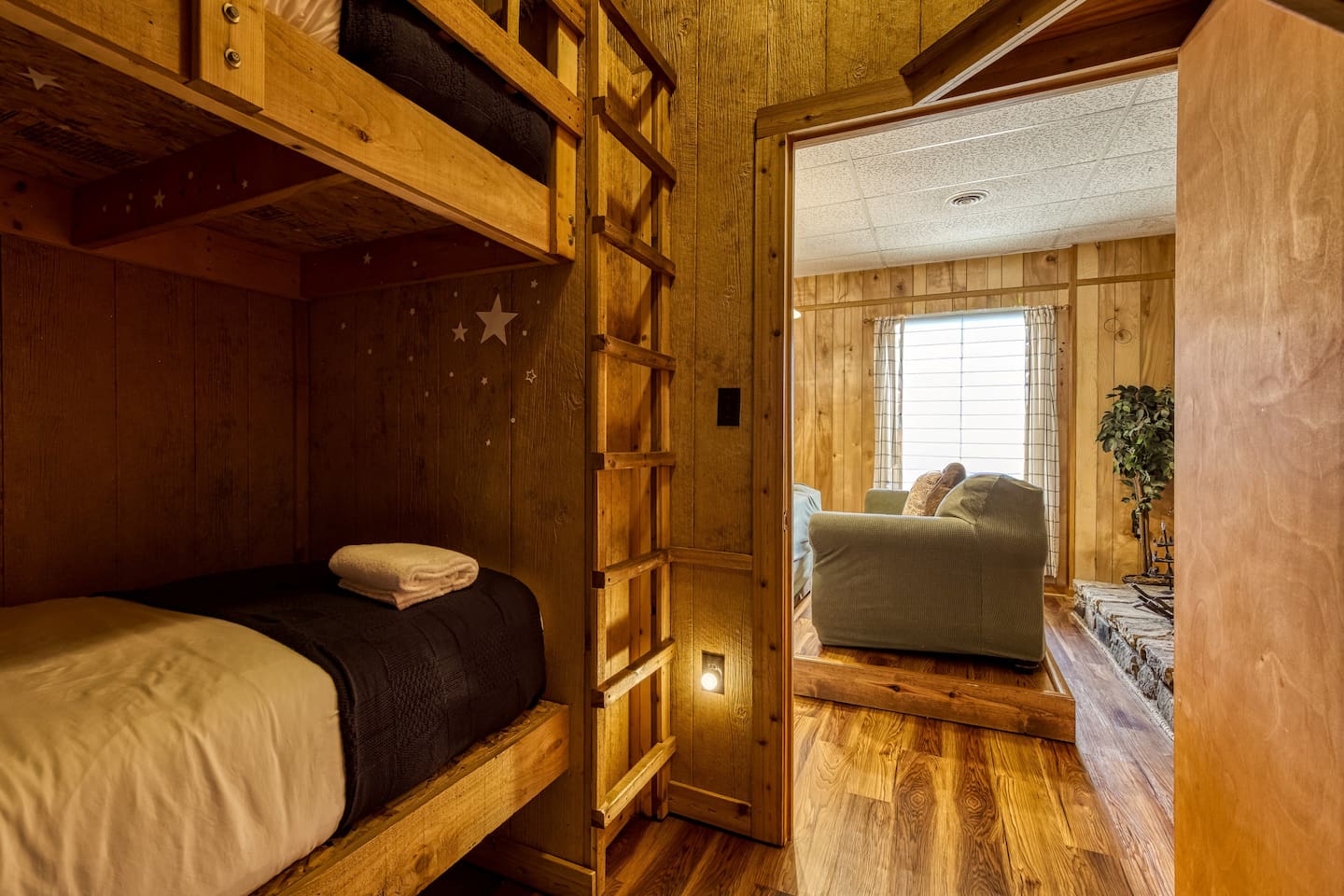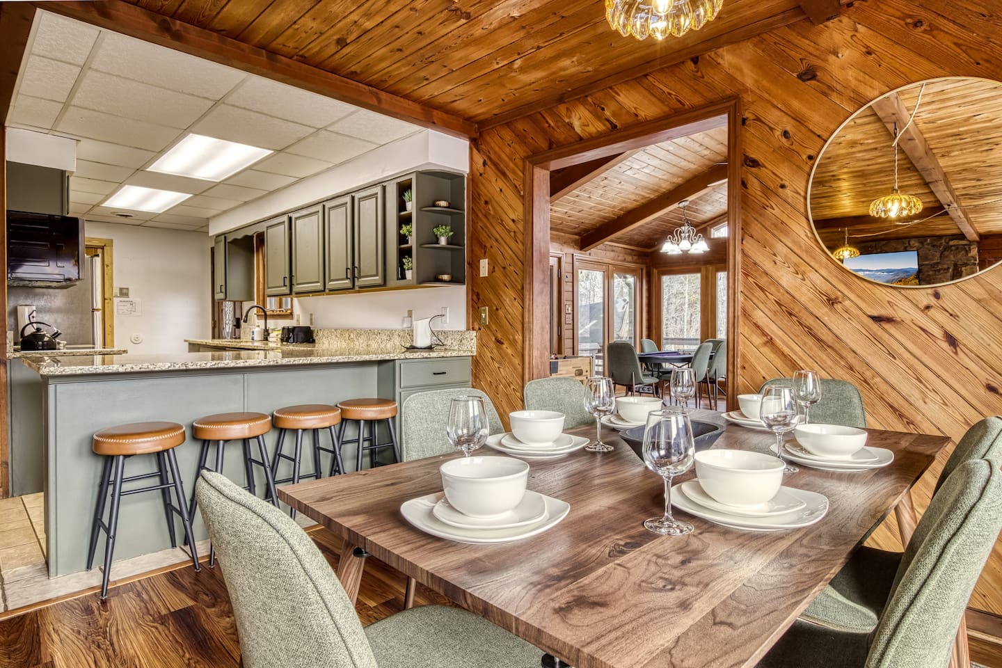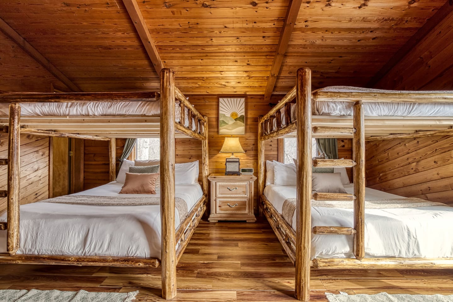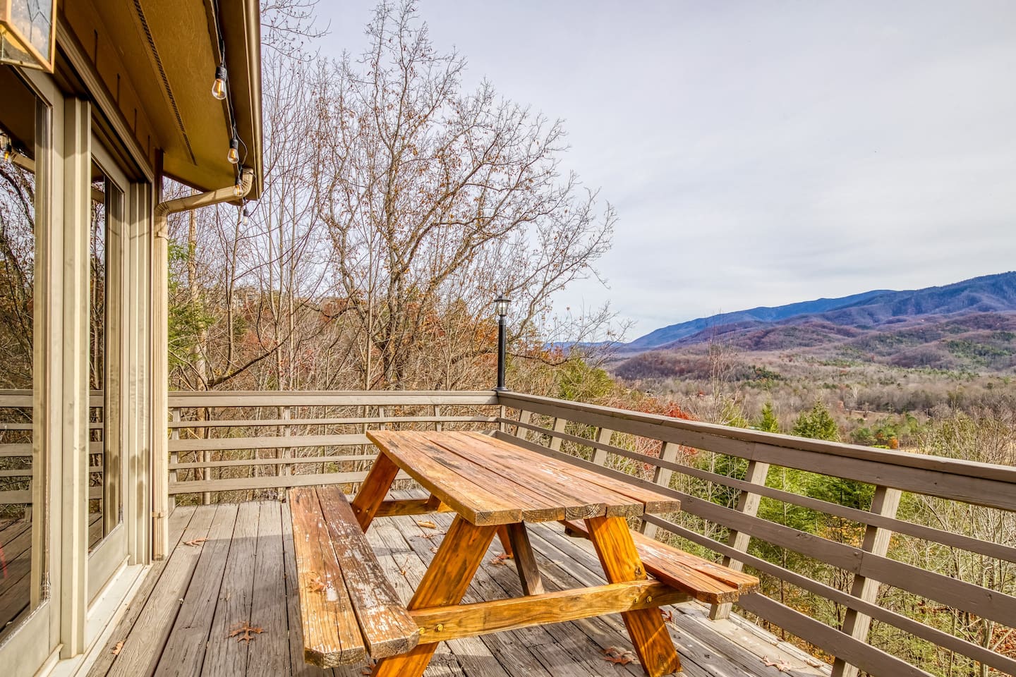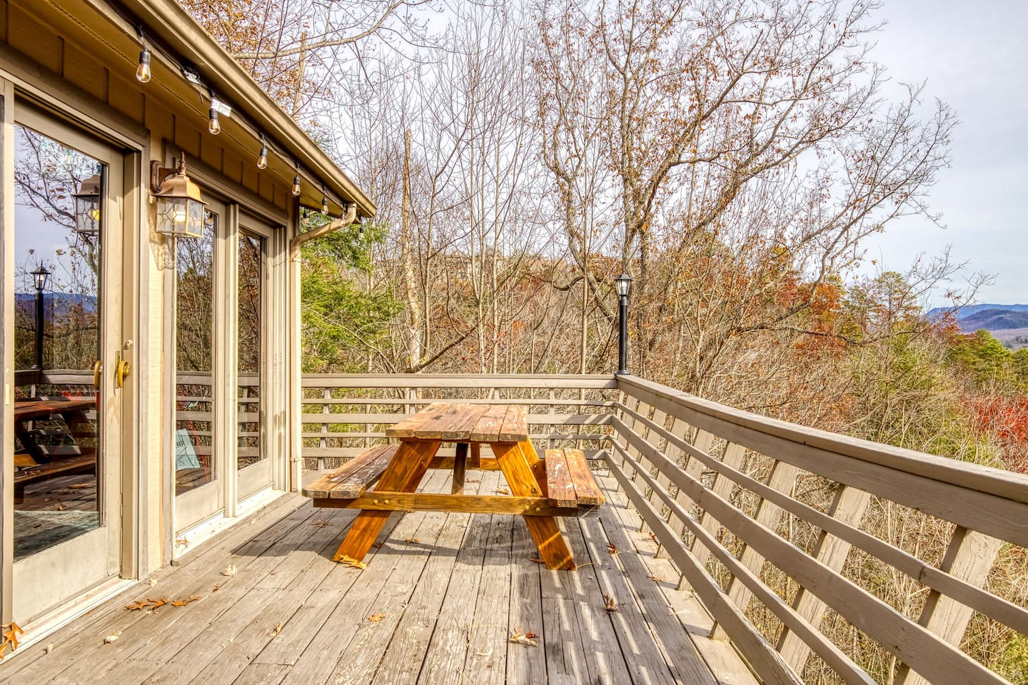⛰️ Cloud 9-Breathtaking Views •Theater •Games •Hot Tub •Resort Pools •Pet Friendly Welcome to Cloud9, a spacious, family-friendly luxury cabin perched high in the Smokies with true, unobstructed panoramic views. Designed for unforgettable family trips, group getaways, and relaxing mountain retreats, this home combines comfort, entertainment, and resort-style amenities all in one place. Whether you’re relaxing on the deck at sunrise, gathering around the fire pit, watching movies on the 120” theater screen, or splashing in the resort pools — this cabin delivers the full Smokies experience. ✨ What You’ll Love • ⛰️ Stunning unobstructed mountain views from multiple levels • 🎬 Private theater room w/ 120” screen & cozy reclining seating • 🎱 Game room with air hockey, pool table, and foosball • 🛁 Relaxing jetted hot tub overlooking the mountains • 🔥 Outdoor fire pit + porch swing + plenty of seating • 📶 High-speed 250 Mbps WiFi • 📺 4 Smart TVs with Sling, Netflix & HBO Max • 🏊 3 resort-style shared pools • 🏓 Nearby pickleball & basketball courts • 🍳 Fully stocked kitchen + charcoal grill •👫Perfect for families — huge bunk room, kids’ bunk space, and room to spread out 🏡 The Space: Main Level • Master bedroom with King bed & private ensuite bathroom • Open living room with mountain views & cozy seating • Fully equipped kitchen with everything needed to cook at home • Game room for hours of entertainment • Dedicated work desk for remote work or school Upper Level • Bedroom with King bed • Massive bunk room with four Queen bunk beds — ideal for families & groups • Full bathroom Lower Level • Kids’/teen bedroom with built-in bunk bed • Full bathroom • Private theater room with giant 120” screen, deep couches & cinematic lighting 🌲 Outdoor Living • Jetted hot tub with mountain views • Wood-burning fire pit surrounded by seating • Porch swing for morning coffee • Outdoor dining & lounging area • Charcoal grill • Peaceful tree-lined views from every angle 🛏️ Bedrooms & Bathrooms Bedrooms: 4 Beds: 8+ Bathrooms: 3 Sleeps: 16+ comfortably 🏊♂️ Resort Access Included: Guests have full access to all community amenities, including: • 3 resort-style outdoor pools • Nearby pickleball courts • Nearby basketball court • Walking areas, scenic overlooks & more 💼 Work-Friendly Features • 250 Mbps high-speed WiFi • Dedicated work desk • Strong cell service 🎉 Perfect For • Large families • Multi-family trips • Group retreats • Sports teams / tournaments • Smoky Mountain exploring • Movie & game-night lovers 📍 Nearby Attractions • 10 miles to Great Smoky Mountains National Park • 11 miles to Gatlinburg • 18 miles to Pigeon Forge • 19 miles to Dollywood 🏞️ Neighborhood Located in a peaceful mountain community just minutes from Gatlinburg and the Smoky Mountains, this cabin offers quiet seclusion with quick access to top attractions. The drive up the mountain is steep and winding in spots and may feel intimidating to some; the driveway is also steep. 2WD works in normal weather, but 4WD is strongly recommended in rain, ice, or snow. This area has routine bear visitors, so please keep a safe distance, lock your car doors, and never leave food in your vehicle. Standard Bear Advisory: • Never approach, feed, or attempt to interact with bears • Keep all food, trash, and scented items secured at all times • Do not leave food or coolers on decks or porches • Keep vehicles locked and free of food or wrappers • Maintain a minimum of 150 feet if you encounter a bear • Make noise and slowly back away — never run • Notify us immediately if a bear becomes persistent or aggressive ⚠️ BEFORE YOU BOOK — Things to Know Before You Book! • Mountain Roads: The drive in includes some steep, winding hills (all paved) — very typical for the Smokies and part of the mountain experience. It may feel a bit adventurous if you're not used to mountain driving. 4WD is required during inclement weather. • Steep Driveway: The driveway is also steep. 2WD is fine in normal weather, but 4WD is recommended during rain, ice, or snow. • Remote & Peaceful: The cabin is tucked away in a quiet, natural setting perfect for unplugging and relaxing. While it feels secluded, you’re still just 11 miles from downtown Gatlinburg and close to major attractions. • Bear Activity: This area experiences frequent bear activity, especially during warmer months. For your safety: • Never approach, feed, or attempt to interact with bears • Keep a minimum of 150 feet if you see one • Do not leave food, trash, coolers, or scented items outside • Lock all vehicle doors and remove ANY food or wrappers • Make noise and slowly back away if a bear comes near — never run • Use designated trash containers • Contact 24/7 Security if a bear becomes persistent or aggressive • Water Pressure (Shared Well): The cabin runs on a shared mountain well. Water pressure can be lower than average, especially if multiple showers or sinks are running. This is normal for higher-elevation cabins. 🔑 Guest Access Guests have the entire cabin to themselves plus full, unlimited access to all resort amenities. Self-check-in and keyless entry make arrival simple and private. ❤️ Why Guests Love Cloud9 This cabin offers the perfect balance of peaceful mountain seclusion, resort fun, luxury touches, and endless entertainment — all wrapped in sweeping Smoky Mountain views. You’ll feel like you’re on top of the world… because you are. Our prices include all fees. No hidden fees.